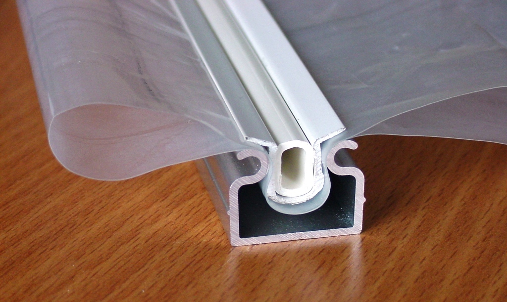 Listwy do mocowania folii wykonane są z profilu AL a wypełnienie stanowi profil wykonany z wysokogatunkowego PCV odpornego na UV oraz na udar.