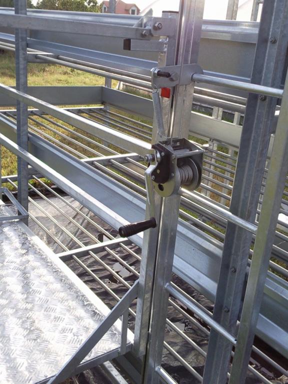 Mechanizmem do obsługi podestu jest wciągarka ręczna. Podłogę podestu wykonano z blachy aluminiowej ryflowanej.